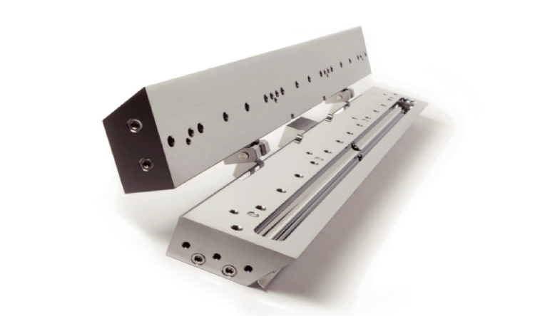狭缝涂布模头可以生产出非常薄的涂层以及透明的光学涂层,同时可使涂层量保持在非常精确公差范围内,与将涂布液擦拭到基材上的涂布系统不同,我们的狭缝涂布模头属于模唇缝隙相对较大(可达到0.0762mm)的涂布模头,由此模唇缝隙抽吸出的液体可形成最薄至1μm的涂层。狭缝涂布模头可在涂层厚度只有0.002mm或者是2μm的情况下,将整个宽度上的涂层量控制在5%左右的公差变化范围内。我们生产的狭缝涂布模头模唇是固定的,因此可以利用可换的控隙片来改变涂层的厚度和宽度。涂布量从不足1μm到254μm的涂层厚度,该类模头可加工各种类型的胶粘剂(包括特殊的透明胶粘剂)电池、陶瓷电容器、装饰表面、电子显示介质、过滤膜、地板、燃料电池、磁性泥浆、医疗产品、光阻材料、压敏胶带、太阳能电池、超导体、撕带和窗用薄膜等。
